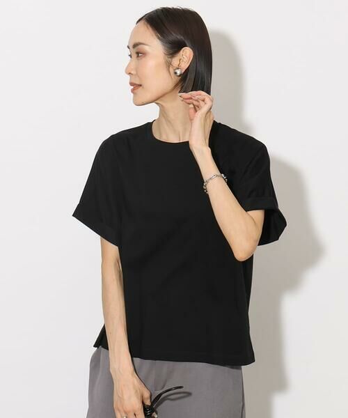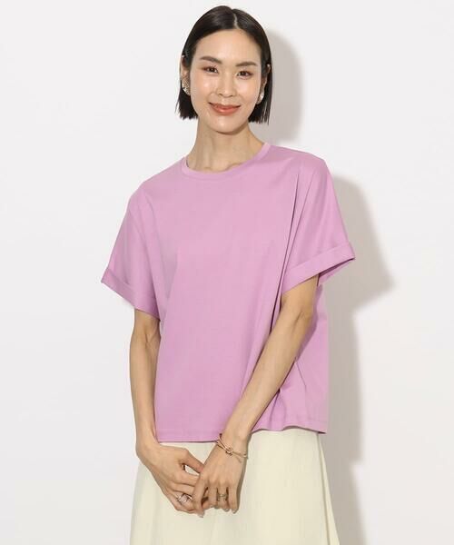 袖のロールアップがさりげないアクセントになった、こなれ感たっぷりのTシャツ。シンプルながらも程よいゆとりとニュアンスのあるシルエットで、着るだけでサマになる一枚です。カジュアルスタイルはもちろん、ワイドパンツなどとのきれいめスタイリングにもマッチ。インでもアウトでもバランス良く決まる丈感で、デイリーに活躍してくれます。
