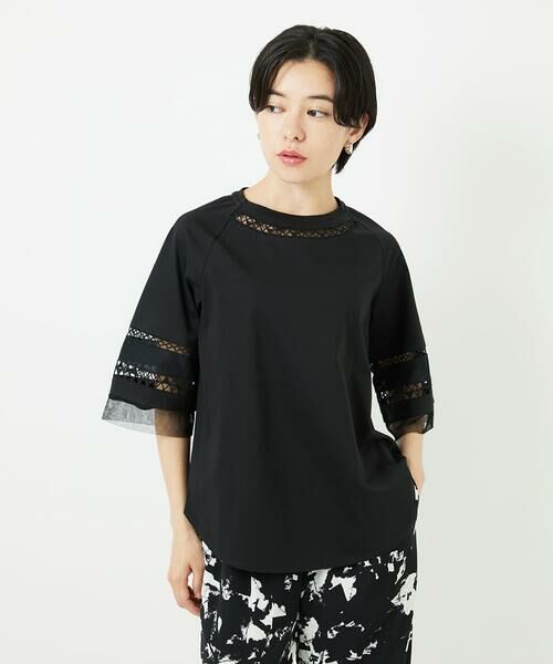 繊細な刺繍とチュールの異素材ミックスが華やかさを演出。フレアスリーブが腕をすっきり見せつつ、カジュアルな雰囲気がありながら、きれい見えする1枚で着映える一着。シンプルなボトムと合わせるだけで、大人の上品カジュアルが完成します。週末のお出かけや旅行先に着ていきたくなるカットソーです。