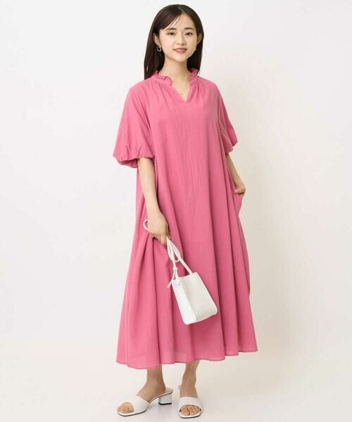 たっぷりとしたボリュームのあるコットンワンピース。デコルテがきれいに見えるスリットネックとラクチンな着心地のシルエットが着心地◎。袖はバルーンスリーブに仕上げ、デザインのアクセントに。