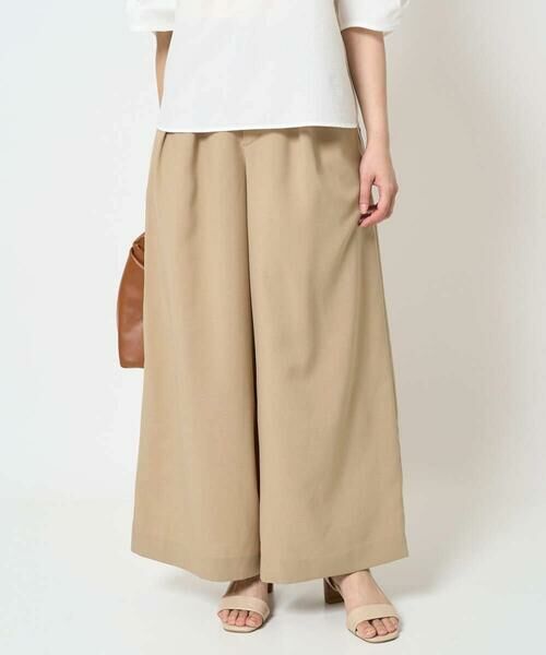 カジュアルにもきれいめにも着こなしやすい2タックデザインのワイドパンツ。腰周りは身体のラインを拾わずゆったりと、ウエストは細見えする美シルエットに仕上げました。後ろウエストはゴム入りで、楽な穿き心地。