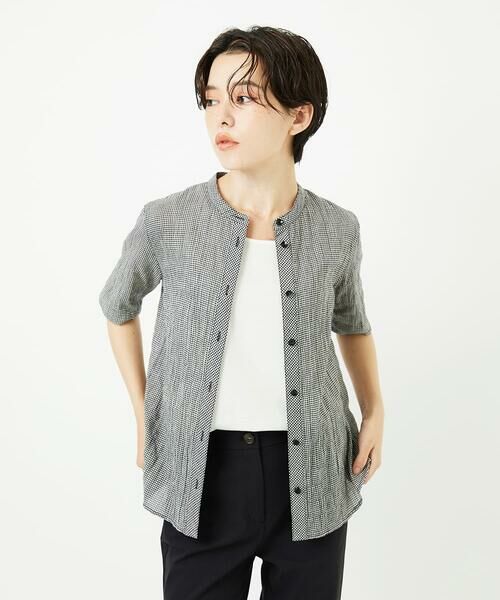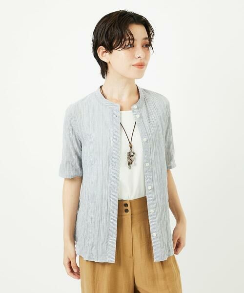 ベーシックなバンドカラーの半袖ブラウス。
