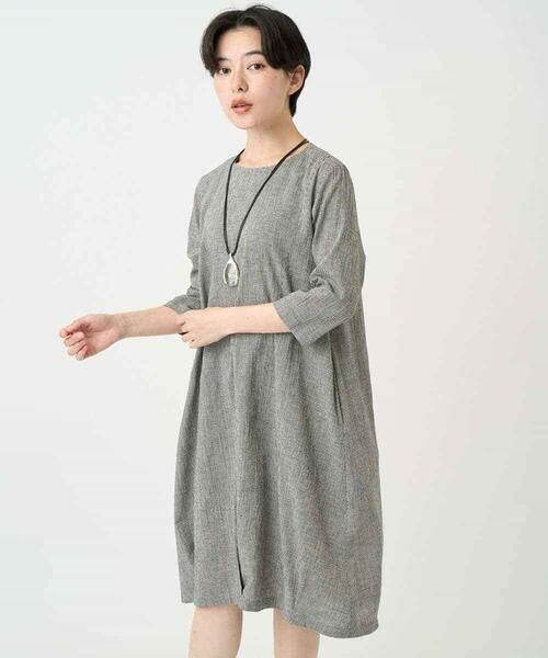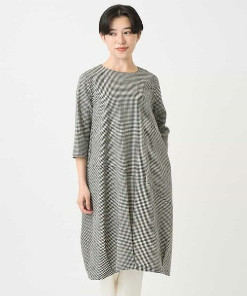 Maison de CINQ / メゾン ドゥ サンク ロング・マキシ丈ワンピース | コットンリネンコクーンラインワンピース(千鳥)