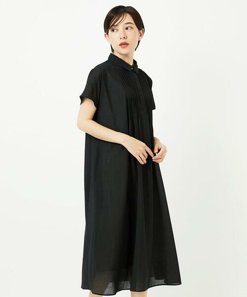 【小さいサイズ /洗濯機で洗える】ピンタックデザインシルエットワンピース