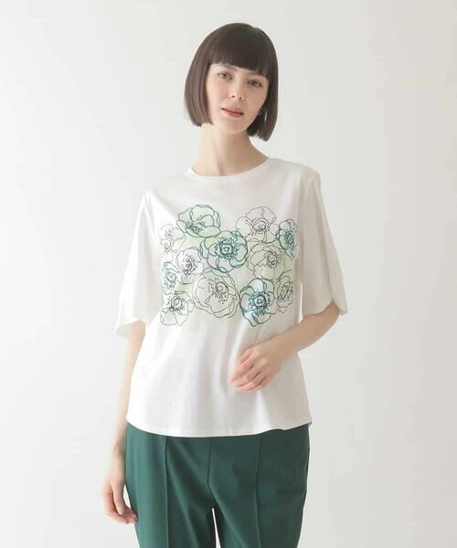 Maison de CINQ / メゾン ドゥ サンク カットソー | 【小さいサイズ/接触冷感】フラワープリントコットンカットソー(ホワイト)