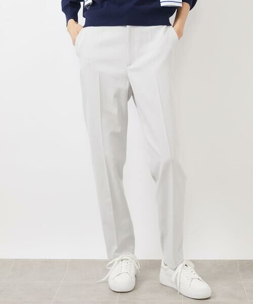 ストレッチ性やイージーケア性を活かしたすっきりシルエットが特徴。シルエットは細身ですが生地のストレッチが効いて履きやすい1枚となっています。合わせやすいシルエットはワードローブに欠かせないアイテムです。