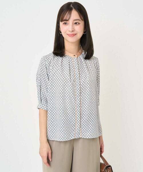 Maison de CINQ / メゾン ドゥ サンク シャツ・ブラウス | 【小さいサイズ】幾何プリント配色ブラウス/接触冷感/洗濯機で洗える(アイボリー)