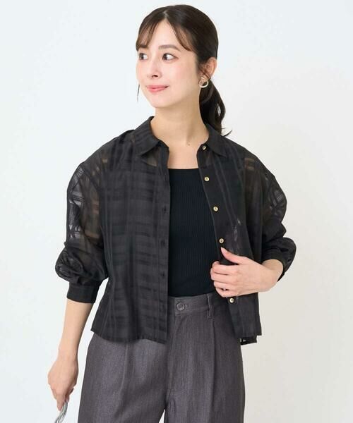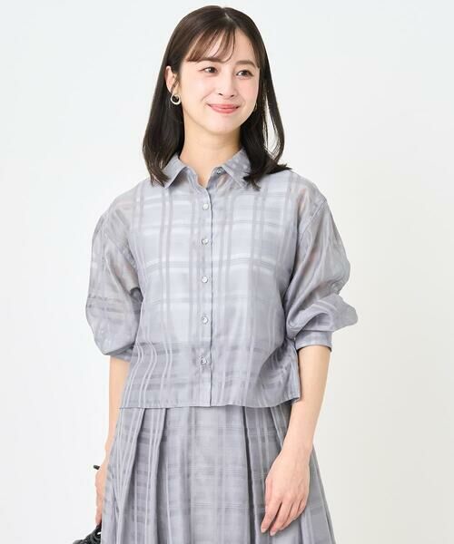 やや短め丈が新鮮なシャツブラウス。トレンドライクなシアーチェックは一枚で存在感があり、羽織るだけで普段の着こなしの鮮度アップが期待できます。