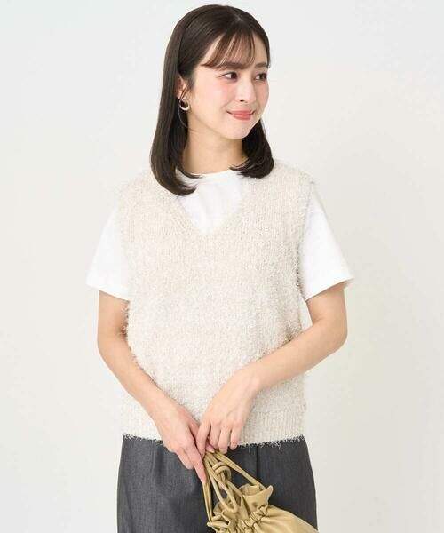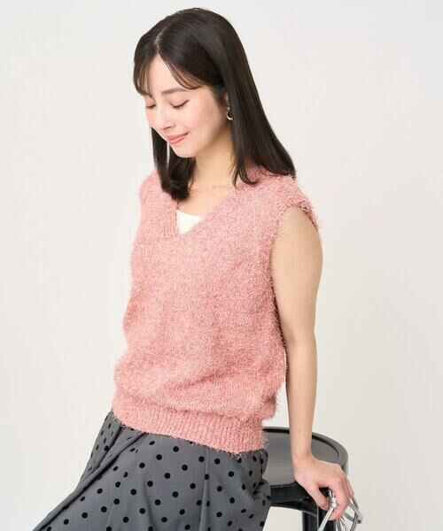 Maison de CINQ / メゾン ドゥ サンク ベスト | 【小さいサイズ】ラメシャギーニットジレ/前後2way/洗える(ピンク)