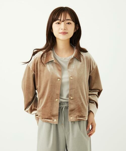 表情のあるベロアは存在感たっぷり。一枚羽織るだけで秋らしさがぐっと増すアイテムはいつものコーデも新鮮に見せてくれるはず。同シリーズでワンピース【F1EAD31200】とワイドパンツ【F1LAD31160】もご用意しています。