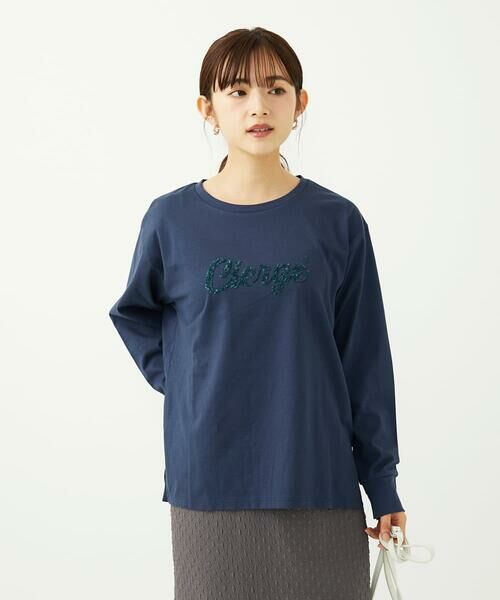 Maison de CINQ / メゾン ドゥ サンク カットソー | 【小さいサイズ】刺繍ロゴデザイン コットンロンT/洗える(ネイビー)