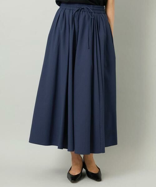 Maison de CINQ / メゾン ドゥ サンク ロング・マキシ丈スカート | [小さいサイズ][セットアップ対応]ギャザースカート サッカー無地(ネイビー)