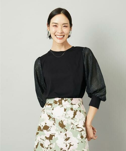 Maison de CINQ / メゾン ドゥ サンク カットソー | [小さいサイズ]ラメチュールスリーブ異素材カットソー(ブラック)