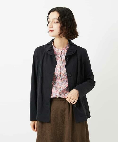 タックを入れた膨らみがポイントの小ぶりな襟のジャケット。ボディーはパネル切り替えを入れ立体的に。すっきりとしたフォルムにこだわった一着です。ストレッチ性に優れた素材を使用しているので大きな動きにも馴染みストレスフリーな着心地です。ボリュームあるシルエットからすっきりとしたシルエットのボトムに、またワンピースに合わせる羽織などとコーディネートしやすい着丈バランスです。お出かけ着からビジネスカジュアルと日常幅広く活躍するアイテムです。