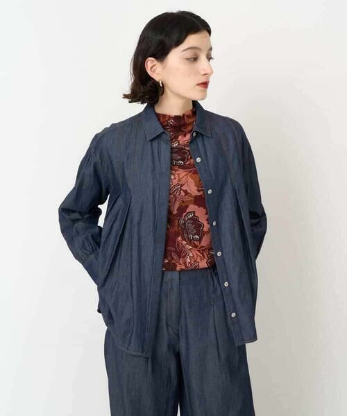 大人の女性のカジュアルコーディネートを美しく見せるデニムシャツ。