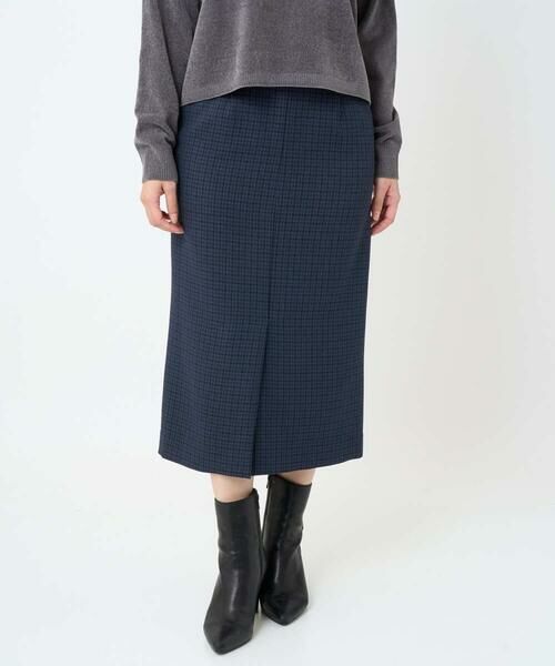 Maison de CINQ / メゾン ドゥ サンク ロング・マキシ丈スカート | 【小さいサイズ】ガンクラブチェック柄ナロースカート/洗える(ネイビー)
