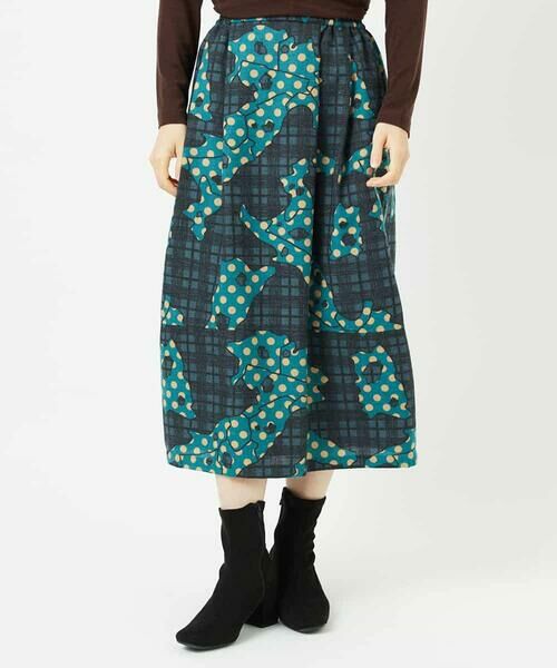 Maison de CINQ / メゾン ドゥ サンク ロング・マキシ丈スカート | [日本製]ウール混ビエライタリアプリントスカート(ブルー系)
