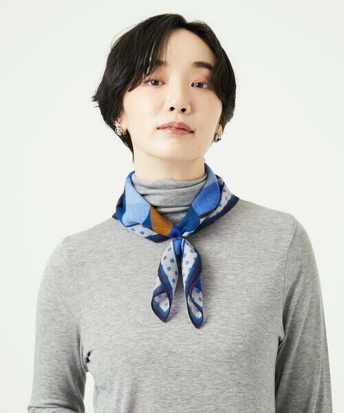 ウール100%の生地にカラフルな幾何柄をプリントで表現しました。少し小さめのスクエア型のストールなので、首元をさりげなくアクセントとにしてくれます。ジャンニロオリジナルスカーフリング【NR2AC12035】との合わせがおすすめ です。