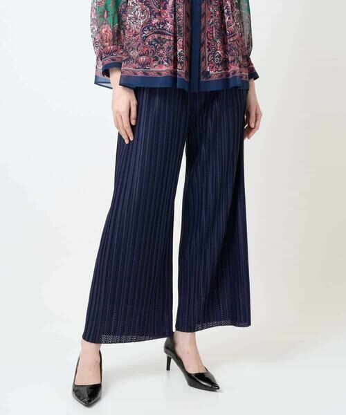 起毛のメッシュ素材を使用した組織感のあるプリーツパンツ。
