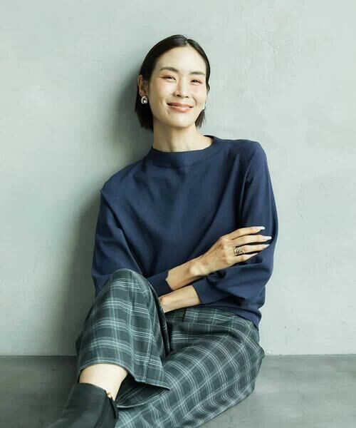 袖にほんのりパフ感を添えた、ボトルネックプルオーバー。薄手でカットソーのように気軽に着られるため、季節の端境期にも重宝します。着回し力の高い無地と、アクセントになるパネルボーダーの2タイプをご用意しました。