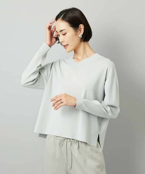 ハイゲージ総針編みで程よい張りと厚みを備えた上品できれいめな素材です。ウールを含まないので、肌に触れてもちくちくせず快適に着ていただけます。