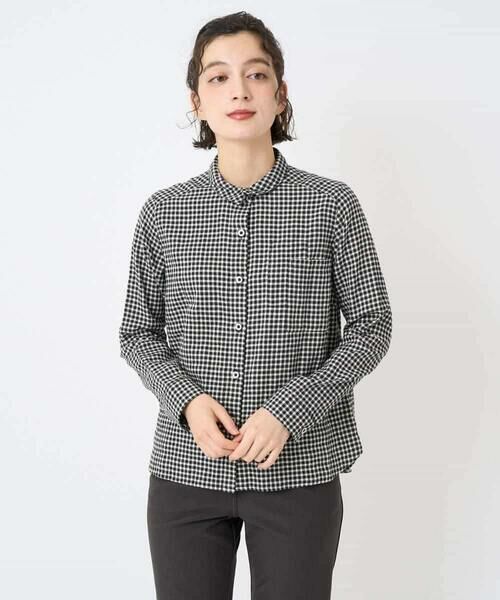 Maison de CINQ / メゾン ドゥ サンク シャツ・ブラウス | シャーリング起毛ブラウス(ダークグレー(ギンガムチェック))