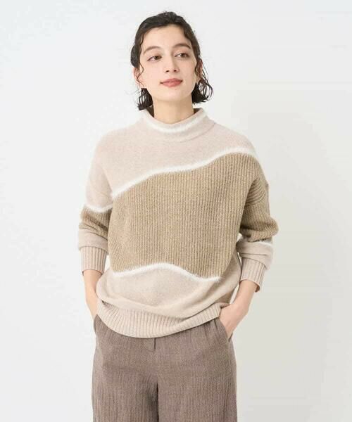 ウェーブ柄が特徴のニットプルオーバーです。天竺の裏目や片畔編みを組み合わせることで、シンプルながら単調になりがちなニットに表情を加えて存在感のあるニットに仕上げました。ゆったりとしたシルエットに襟をつけて首元を優しく包み込み、暖かさをキープさせつつ小顔効果も期待できるデザインです。