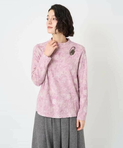 Maison de CINQ / メゾン ドゥ サンク カットソー | フラワー柄パイルジャガード起毛プルオーバー(ライトグレー)