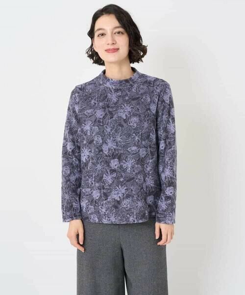 暖かみある立体的なパイルジャガードを使用したモックネック風のプルオーバー。優しく浮き上がる花々が線描きで表現されたジャガードニットは上品さも感じさせてくれる大人かわいいアイテムです。デイリーにカジュアルなボトムを合わせたリラクシーなコーデやジャケットインナーとしてエレガントミックなコーデにも合わせやいすトップスです。