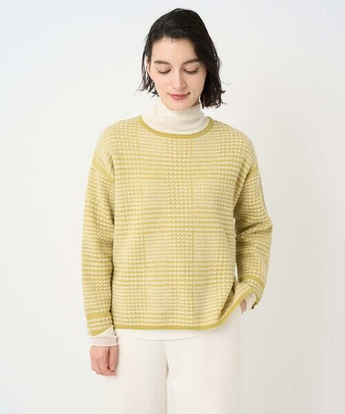 Maison de CINQ / メゾン ドゥ サンク ニット・セーター | ブークレチェックジャカード7分袖ニット(イエロー)