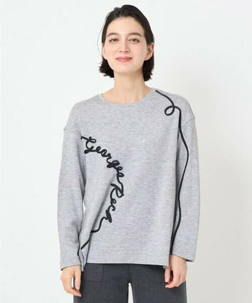 一枚着としてもコートインにも便利なほどよい厚みのプルオーバーです。 細幅のニットテープでGRロゴを筆記体で表現しています。左肩から袖にかけてラフな手描き風のラインがアクセントになっています。なめらかな表面と肌触りで、ニットのチクチク感が苦手な方にも着ていただきやすい一枚です。裾にはサイドスリット入りですっきりした印象になります。