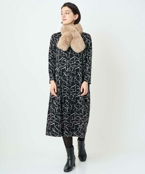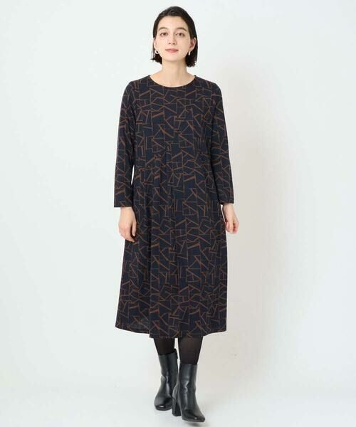ジョルジュ・レッシュらしいオリジナルのジオメトリックプリントのワンピースです。定番のモノトーンだけでなくネイビーとブラウンの配色が今年らしいムードを高めます。スクエアをベースとしたモチーフの中に、頭文字の「G」「R」が隠れている遊び心擽るプリントデザインとなっています。昨年人気だったワンピースのデザインを基に、襟ぐりデザインを変更し、後ろのファスナーをなくしてより着やすくブラッシュアップしました。お出かけの際も便利なサイドポケット付きで、デイリー使いしやすいアイテムです。