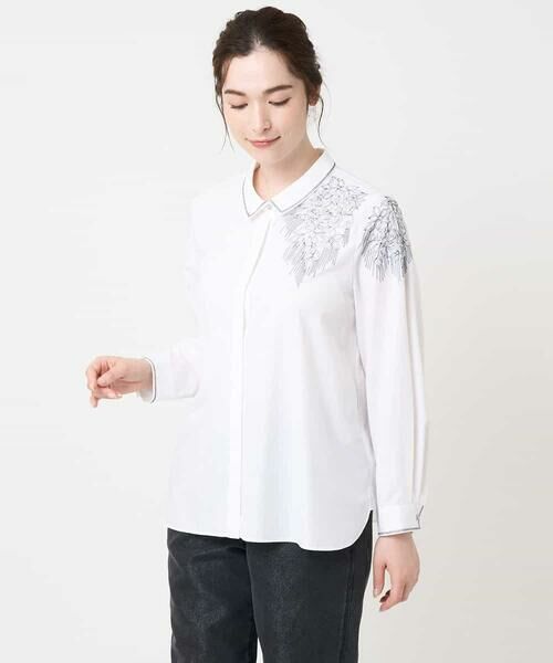 Maison de CINQ / メゾン ドゥ サンク シャツ・ブラウス | 刺繍デザイン長袖ブラウス(ホワイト)