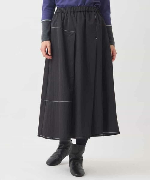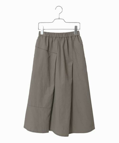 タックディテールをアシンメトリーに配置したステッチデザインが新鮮なモード感漂う一枚。ナイロン素材ならではのマットな質感とナチュラルさがスタイリングを品良くまとめてくれます。ウエストはフィット感のある総ゴム仕様で、安心して着用できる裏地付き。
