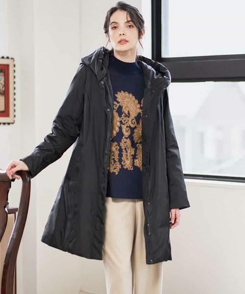 パネルラインで美しいシルエットのひざ丈ダウンコート。
