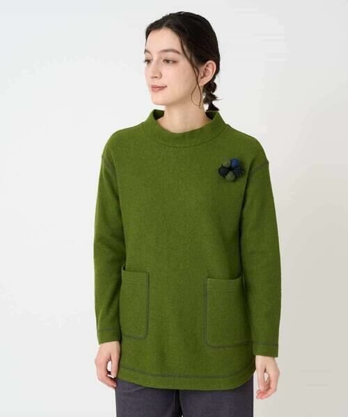 Maison de CINQ / メゾン ドゥ サンク チュニック | [日本製]ウールマイクロループスクランブル編みチュニックカットソー(グリーン)