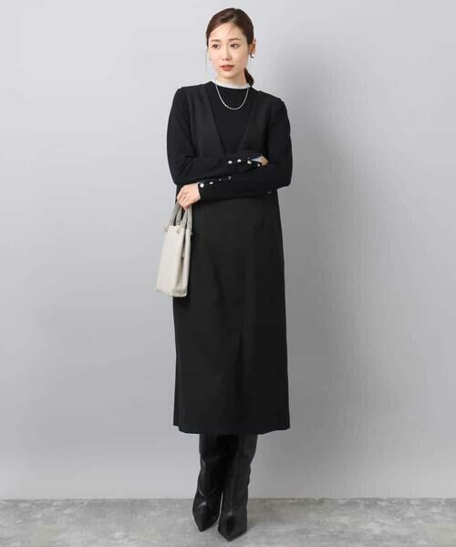 Maison de CINQ / メゾン ドゥ サンク ロング・マキシ丈スカート | 【小さいサイズ】ウールライク Vネックジャンパースカート/洗える(ブラック)