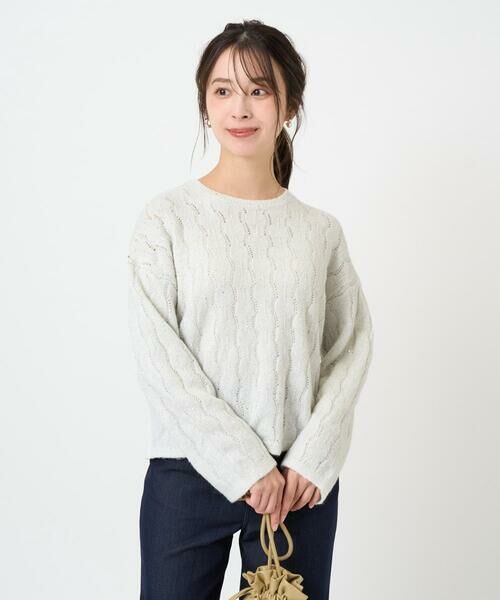 今季も人気の高いキラキラのラメ入りトップス。ケーブル風のぽってりし過ぎない編み柄が気軽に一枚着しやすいデザインです。
