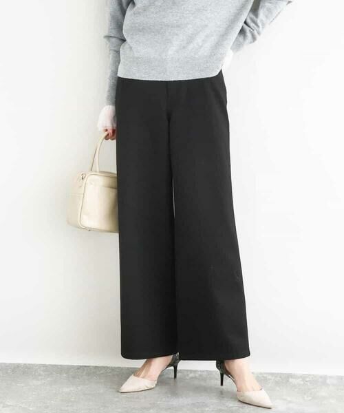 Maison de CINQ / メゾン ドゥ サンク チノ・ワークパンツ | 【小さいサイズ】裏起毛ブーツカットシルエットデニムワイドパンツ/洗濯機で洗える(ネイビー)