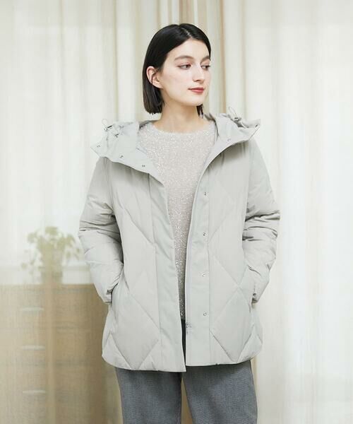 薄ダウン、ストレッチ素材のとても軽いミドル丈コートです。キルト風のダイヤ柄のステッチが目を引くデザインです。ボディラインを拾わないほどよいゆとりのあるシルエットも嬉しいポイントです。ストレッチ性がありとても軽くストレスフリーな着心地です。スモーキーなブルーグリーンとライトグレーのニュアンスカラー展開となっており、冬コーデに華やかさをプラスしてくれます。フードは内側のファスナーを開くとかぶれるサイズになり、マチをたたむと小さくなります。