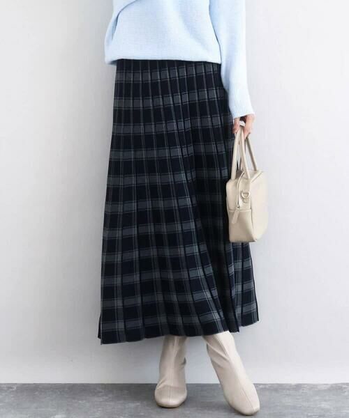 Maison de CINQ / メゾン ドゥ サンク ロング・マキシ丈スカート | チェック柄プリーツニットスカート/洗える(ネイビー)