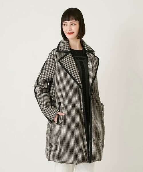 Maison de CINQ / メゾン ドゥ サンク ダウンジャケット・ベスト | 【小さいサイズ】千鳥プリントテープアクセントダウンコート(ブラック)