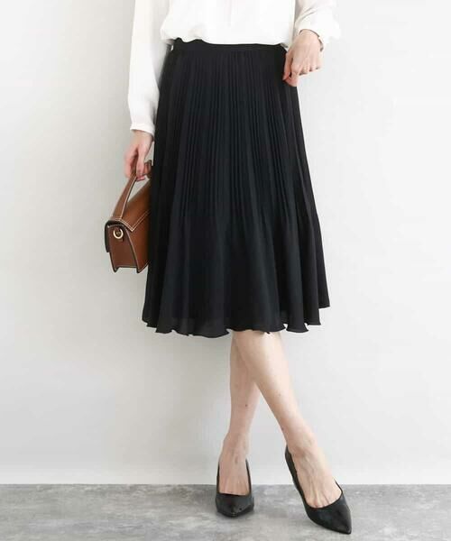 Maison de CINQ / メゾン ドゥ サンク ミニ・ひざ丈スカート | リバーシブルシフォンプリーツスカート/洗える(ブラック)