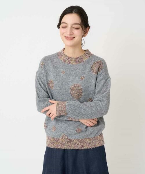 ほどよくゆとりを持たせつつも、着膨れしにくいスマートな形。大小様々なドット柄は、華やかさと上品さをバランスよく演出してくれます。シンプルなボトムスに合わせるだけで、表情豊かなスタイリングが完成します。パンツにもスカートにも合わせやすく、日常に寄り添うデザインです。一枚着はもちろん、アウターのインにも映える万能デザインです。