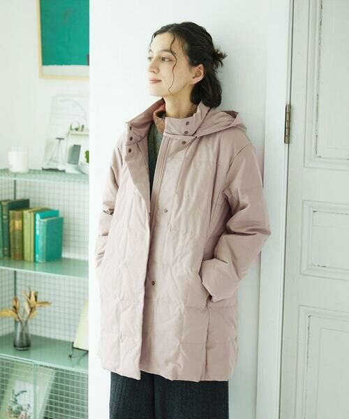着膨れしにくく、すっきりと着こなせるスポーティ過ぎないモダンなダウンコート。ブロックステッチがポイント。細かいステッチと切り替えで調節することで、身体に沿った着心地・シルエットを実現してます。ポケット口にはコンシールファスナーを使用、フードの取り外しが可能な2WAYのコートです。裏地は、バイカラーでウエスト位置のリボンテープをアクセントにしています。ヒップをしっかり包み込む丈設定、また防寒性も◎マットで柔らかな表地の風合いが落ち着きある大人カジュアルな印象を演出してくれます。