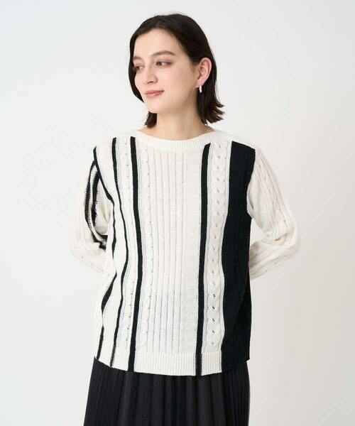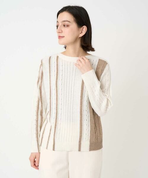 Maison de CINQ / メゾン ドゥ サンク ニット・セーター | バイカラーストライプケーブルニット(ベージュ)