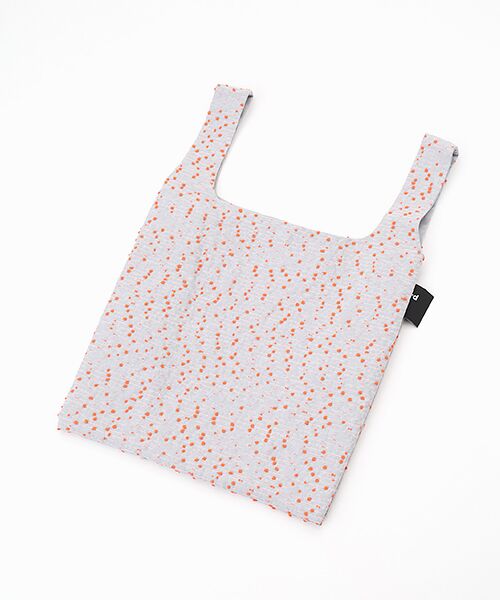 やや厚みのあるライトグレーの生地に、オレンジ色でポチポチとした手触りが楽しいドットを散りばめた、ポップで可愛らしいジャカード織生地。