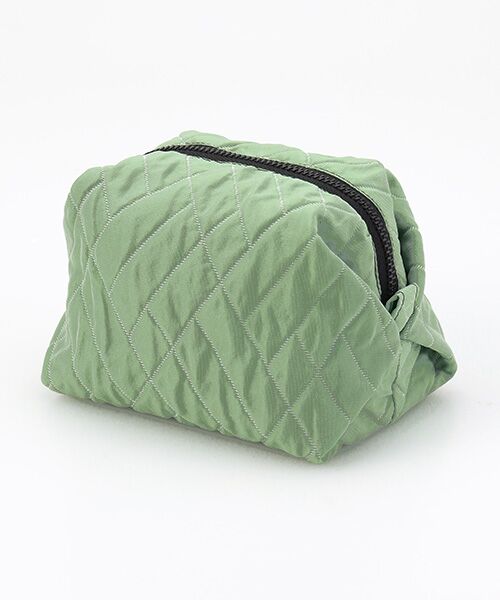 ややパステル調のつや感のあるグリーンで、キルティング生地のようなふわっとした表情を持つマトラッセのジャカード織生地で作りました。