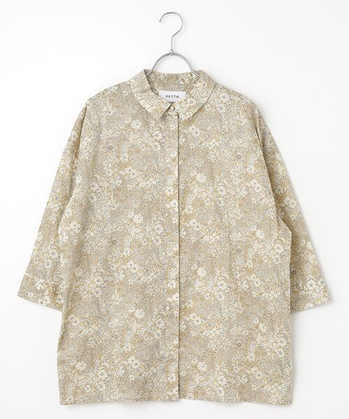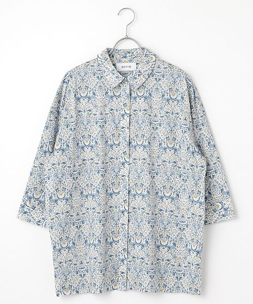 リバティプリントを日常に気負わず楽しめる、襟付きの七分袖シャツ。