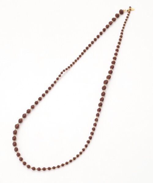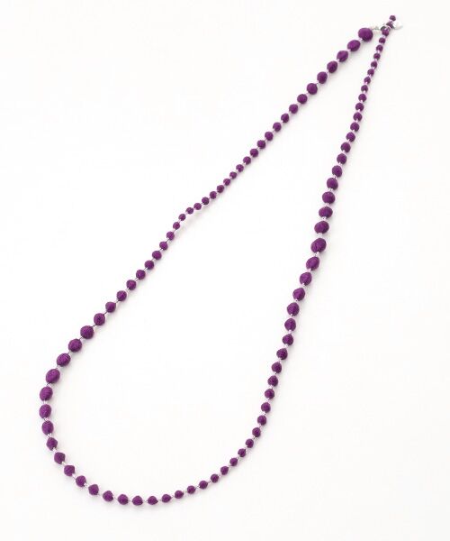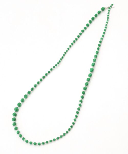 5㎜~9㎜サイズの糸玉が連なる、素材を生かしたシンプルなデザインです。 糸玉のサイズを徐々に変化させることでスマートな印象に仕上げました。