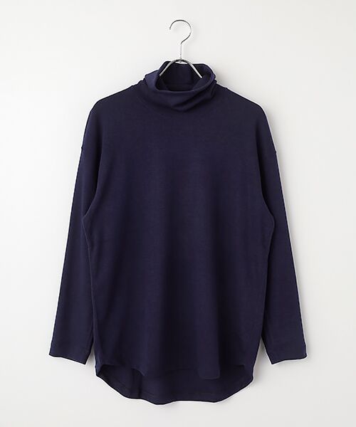 三菱レイヨン(株)の機能素材プレミアウォーム??を用いたタートルネックのロングスリーブTシャツ。肌触りの優れたマイクロ抗ピルアクリルを用いたストレッチジャージーは湿気や汗を熱に変えて保温する機能を持ち、温かさは保ちつつも余分な湿気は逃すので、サラッとした快適さが保たれます。また表面を起毛することで柔らかな肌触りに仕上げています。インナー用途がメインではありますが、タイトフィットにはしていないので一枚でも着用可能。数シーズンマイナーチェンジを繰り返しながらも継続展開されているCURLY&Co.の定番アイテム。今シーズンは袖口幅を若干狭くしています。